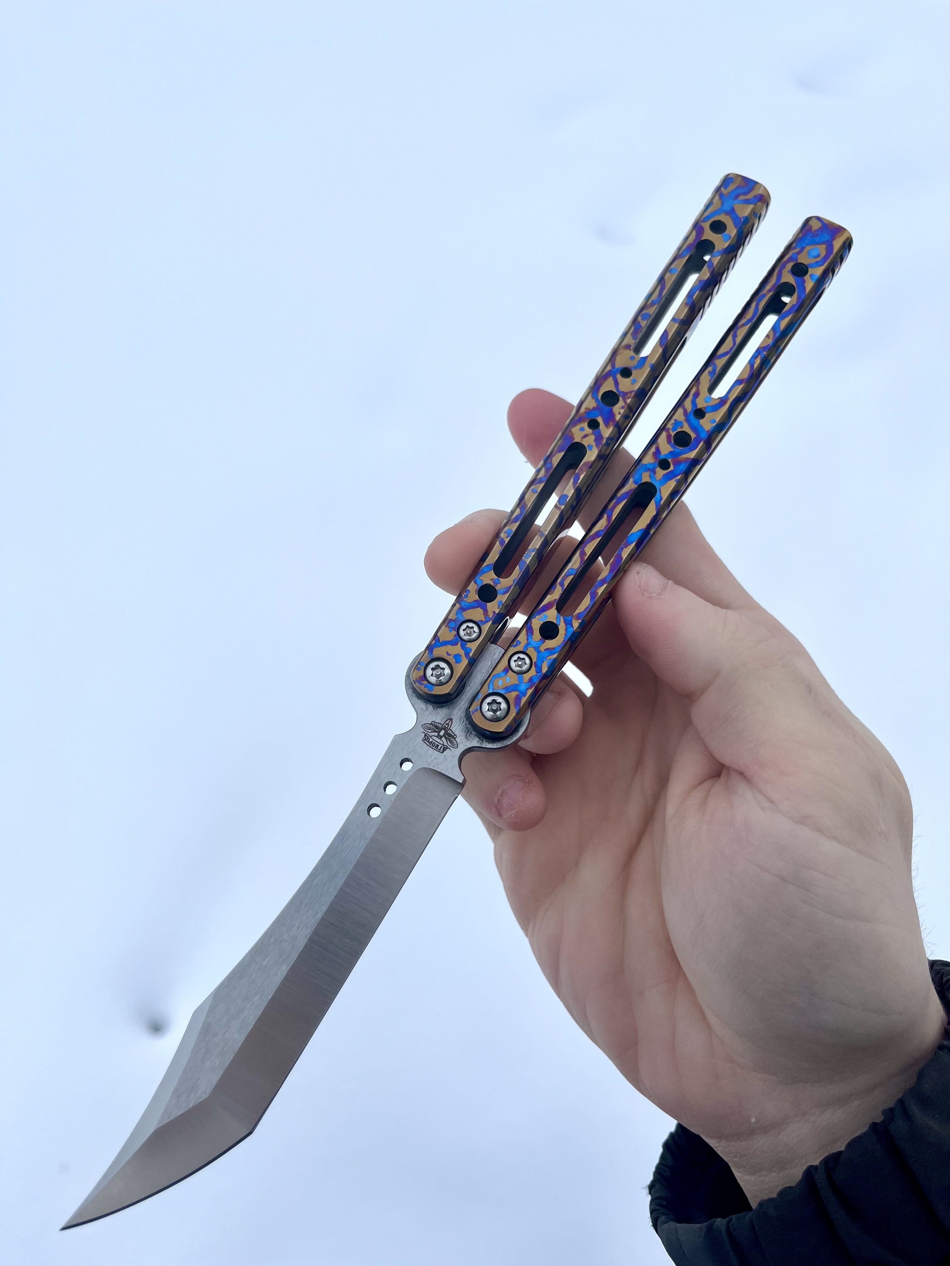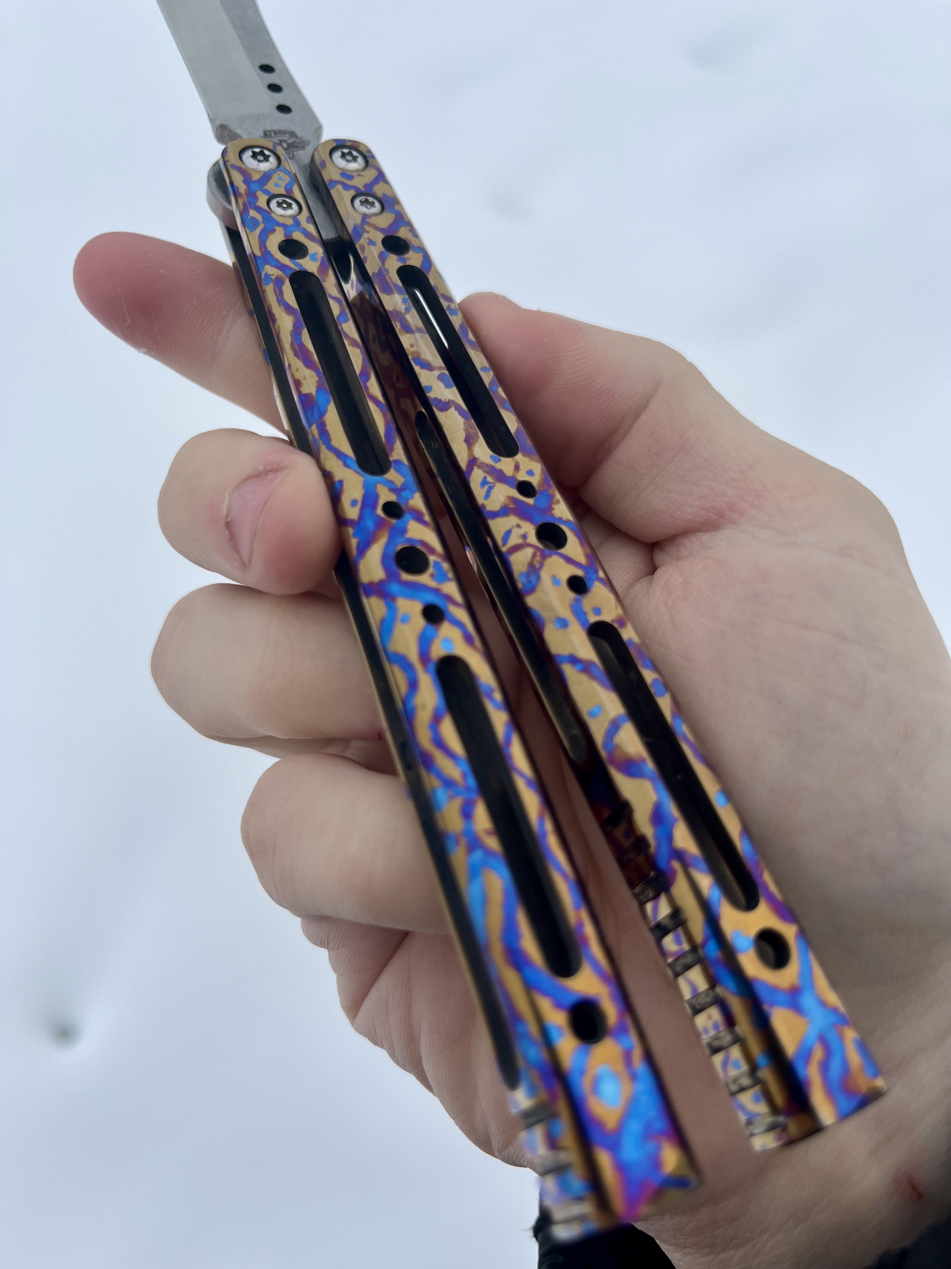 1) Ручная подгонка и настройка фурнитуры. Бушинги с шайбами притерты, отполированы и подогнаны в 0.01см. Это нужно как для идеального хода рукоятей во всех плоскостях, так и для очень приятного звука во время использования ножа.