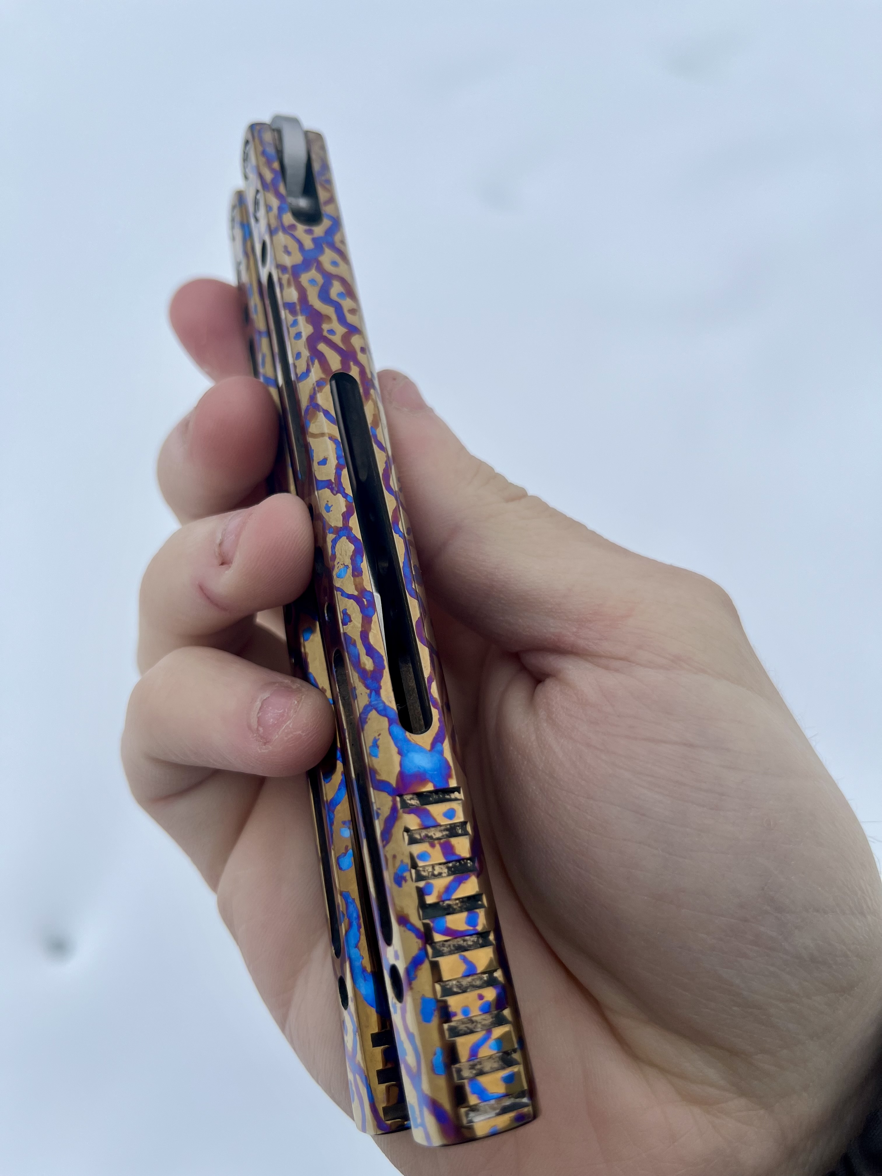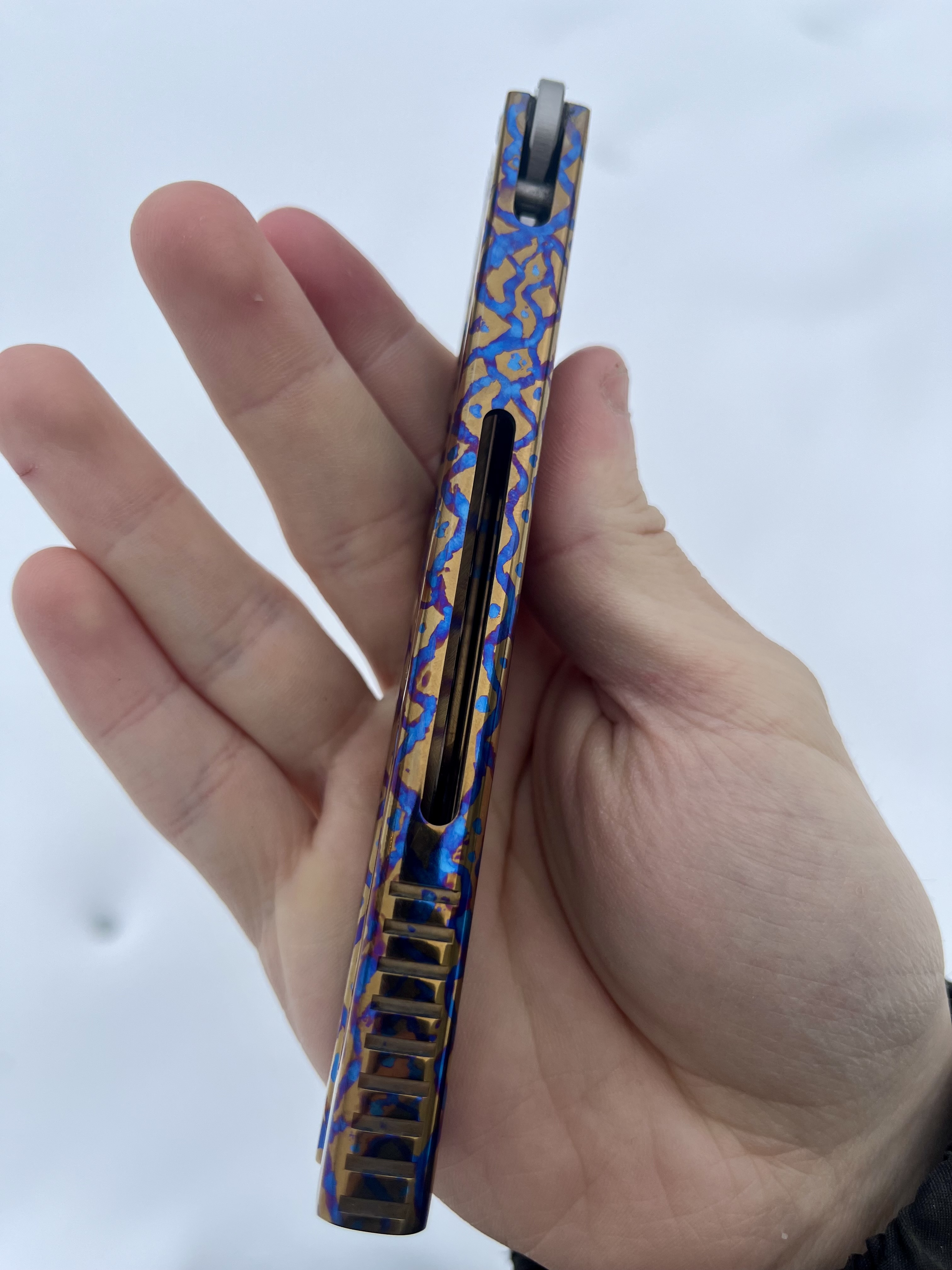 3) Полная ручная перешлифовка и переполировка рукоятей в зеркало, нужно так же для более приятного тактильного ощущения во время использования и высокой цветопередачи на анодировании.